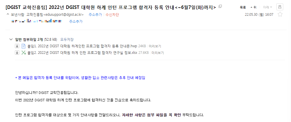 많이 힘들었지만 그만큼 많은 것들을 얻을 수 있는 배경이 되었던 DGIST 인턴!